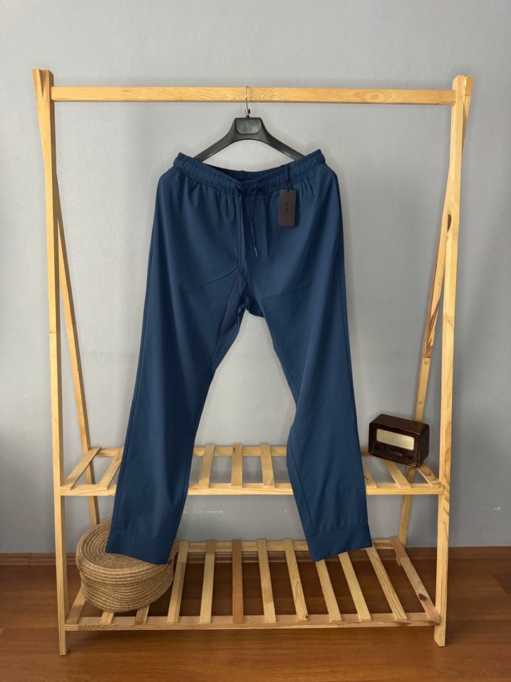 Mavi denim kumaştan, rahat kesim ve midi boyda, günlük kullanıma uygun şık ve sade kadın pantolonu.