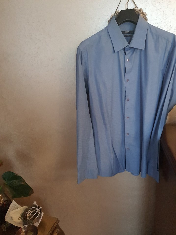 Mavi renkli, regular fit kesimde, düğmeli ve uzun kollu erkek gömleği. İş ve günlük kullanıma uygun, sentetik kumaştan üretilmiştir.