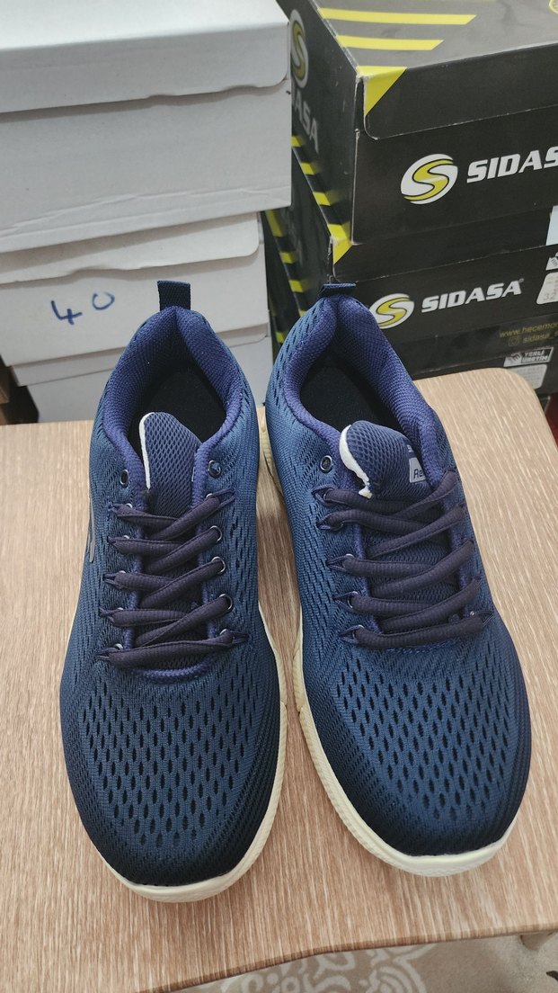 Nefes alabilir kumaş ve kauçuk tabanlı mavi erkek spor ayakkabısı, Velcro ve bağcıklı, trend sokak stili için uygundur. SIDASA markası. 40-41-42 numaraları mevcut