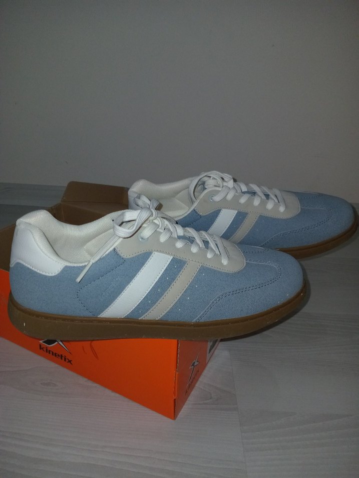 Mavi ve gri tonlarında, beyaz şerit detaylı, kauçuk tabanlı . Spor ve sokak tarzını rahatlıkla birleştirir. Hediye geldi büyük geldi için satıyorum sadece bir kez giyildi .Dikişli .44 numara. Flo dan alınmıştır.