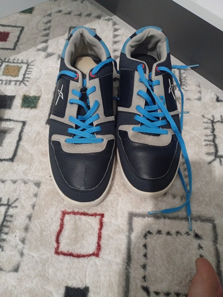 Erkekler için mavi spor ayakkabı bağcıkları, gri ve siyah ayakkabılara canlılık katar. Athleisure tarzına uygun.