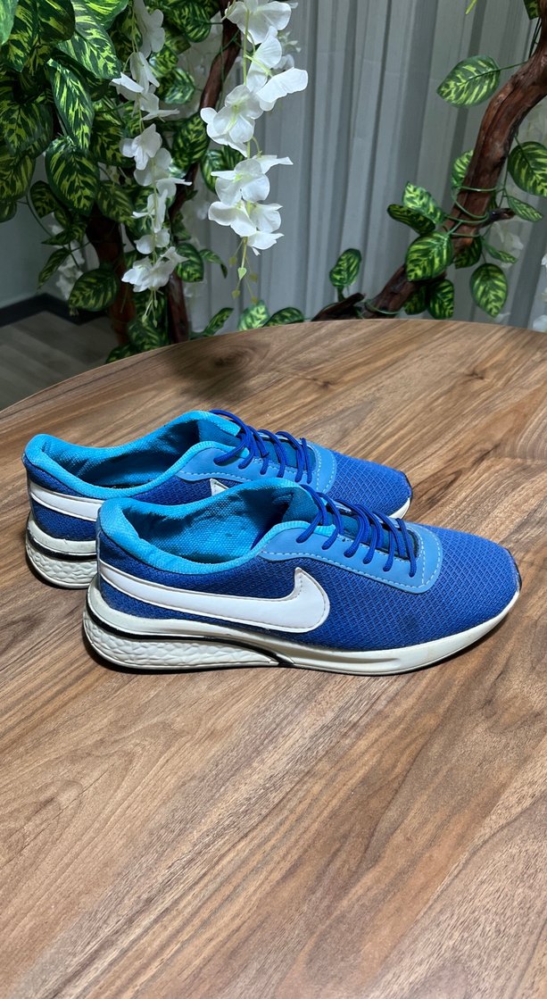 Canlı mavi renkte, elastik bağcıklı ve kauçuk tabanlı erkek spor ayakkabısı. Desensiz sade tasarımıyla sokak stiline uygundur.