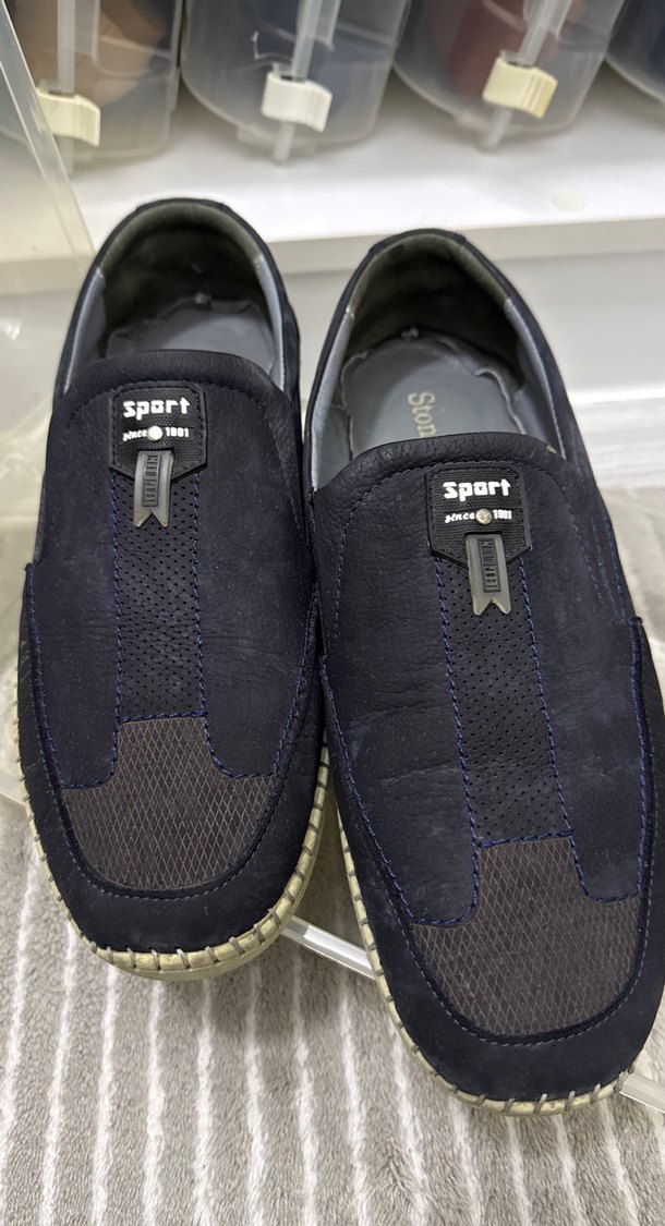 Koyu mavi renkli, velcro kapamalı erkek spor ayakkabısı. Kauçuk tabanlı ve desensiz, sportif sokak giyimine uygun.hafif asla rahatsız etmez 1 kere giyildi yeniden farksız