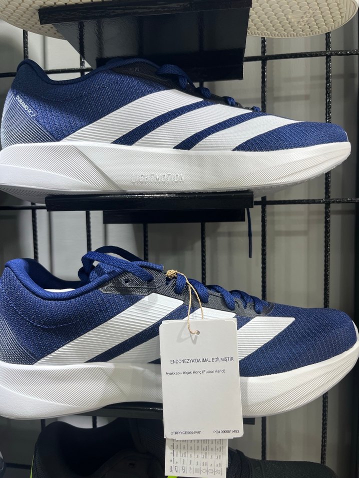 Koyu mavi baskılı erkek koşu ayakkabısı, Velcro kapamalı ve kauçuk tabanlıdır. Sokak stili ve athleisure için uygundur.