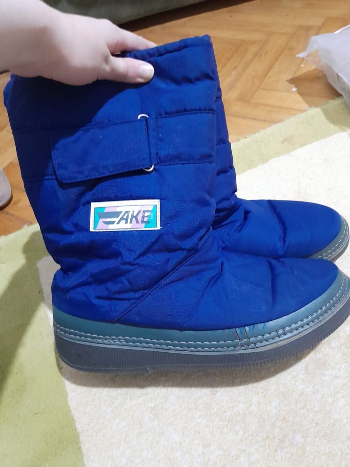 Mavi, parlak görünümlü erkek street wear botları, cırt cırtlı kapama ve yan tarafında "CAKE" etiketi bulunur. Rahat ve günlük sokak stili için uygun.