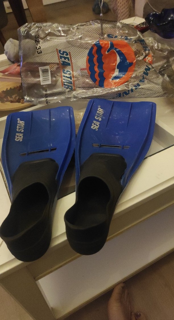 Koyu mavi, Velcro bantlı erkek su ayakkabısı. Kauçuk malzemeden, SEA STAR baskılı, plaj için uygun.