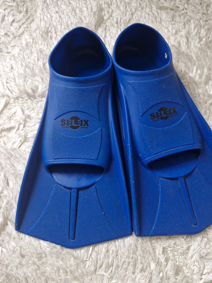 Mavi renkte, kauçuk malzemeden üretilmiş erkek su ayakkabısı. Velcro bantlı, sade ve minimalist tarzda, plaj için uygundur.