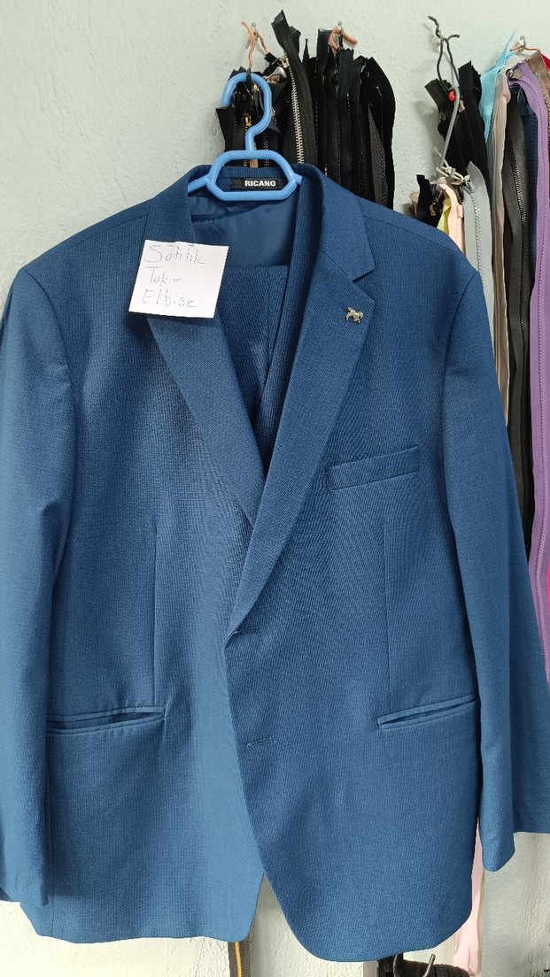 Uzun kollu, düğmeli, parlak mavi renkte, klasik tarzda, normal boyda erkek takım elbisesi. Ofis kullanımı için uygundur. ️