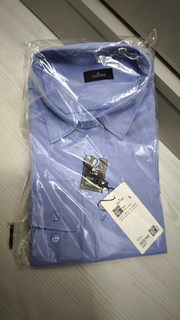 Mavi renkli, düğmeli ve yakalı erkek gömleği. Sentetik kumaştan, regular fit ve uzun kollu. Günlük ve iş stiline uygundur. Tudors markalı. paketi bile açılmadı ilk siz açın