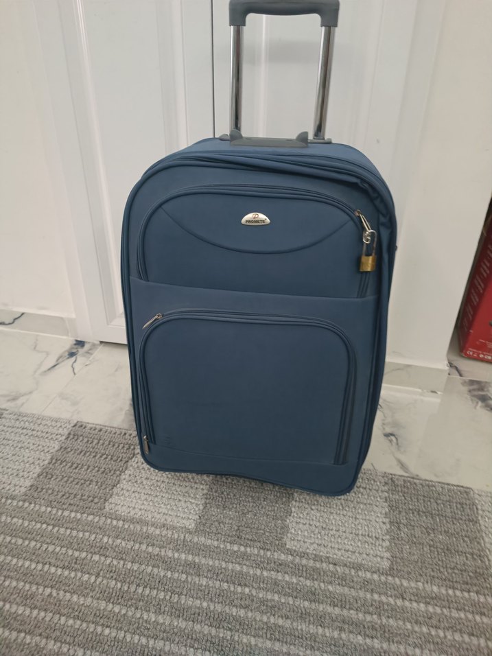 Bu mavi erkek valiz, ekstra güvenlik için kemerli ve iş seyahatlerine uygun sade tasarıma sahiptir. Çoklu fermuarlı bölmeleri ve kolay taşıma için açılır sapı vardır. taşıma sapı yoktur o yüzden uygun fiyatlidir