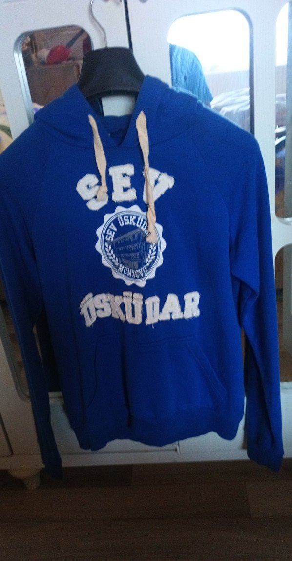 Mavi erkek weatshirt Kapüşonlu üSKUDAR Baskılı