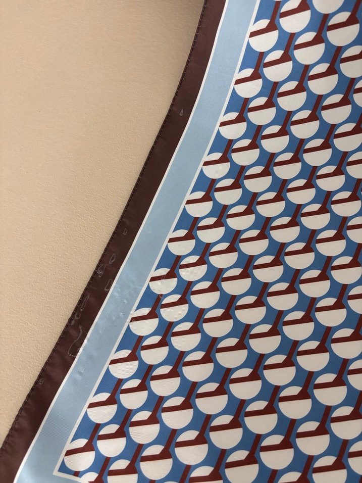 Bu çağdaş masa örtüsü, açık mavi tonlarında soyut desenler ve kahverengi-beyaz detaylarla modern bir görünüm sunar. İç tarafa gelen kısmında ufak renk pürüzleri var