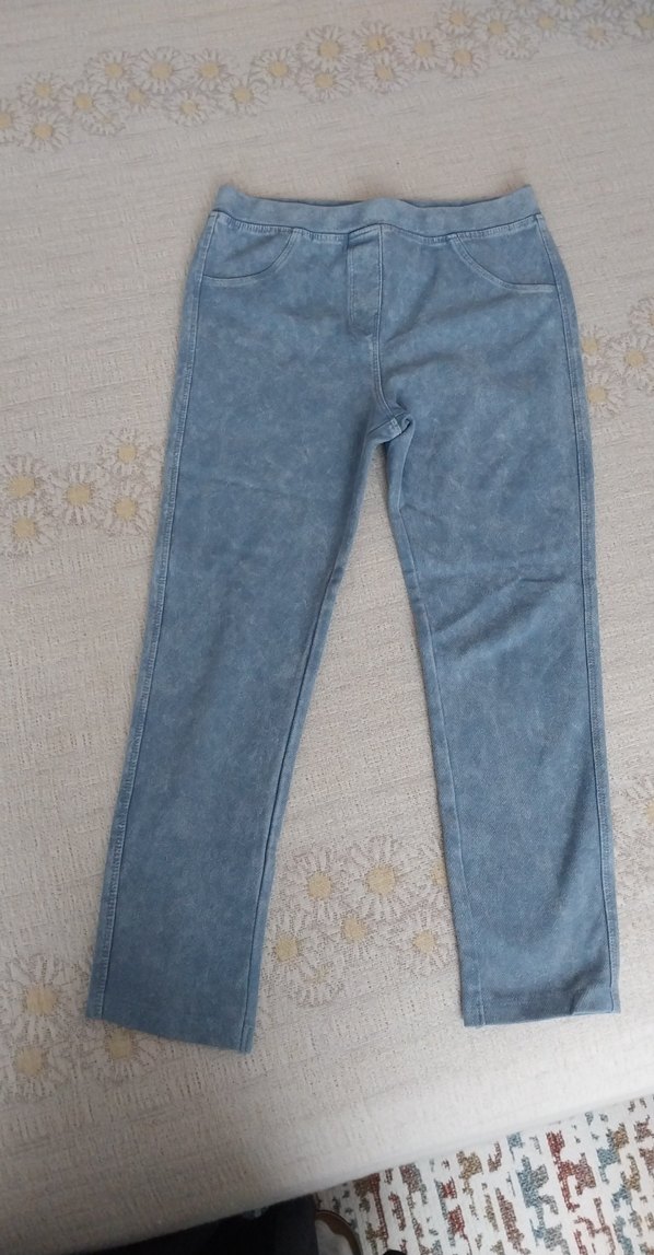 mavi tonlarında, esnek bel bantlı, normal midi boyda, rahat kesime sahip çocuk kot pantolon. Günlük kullanım için uygundur.