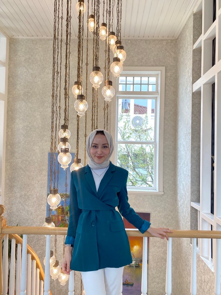 Mavi Etnik Desenli Kadın Ofis Takımı