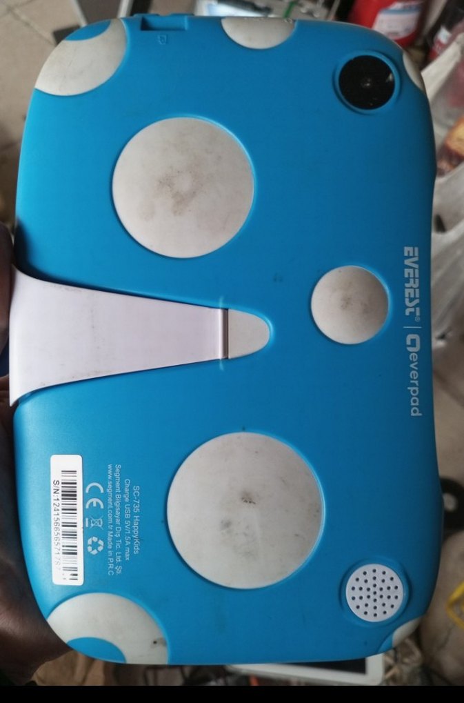 Mavi renkli Everes bebek monitörü, gri dairesel detaylara ve dahili hoparlöre sahiptir. Üzerinde 'EVERESteverpad' yazısı bulunur.
