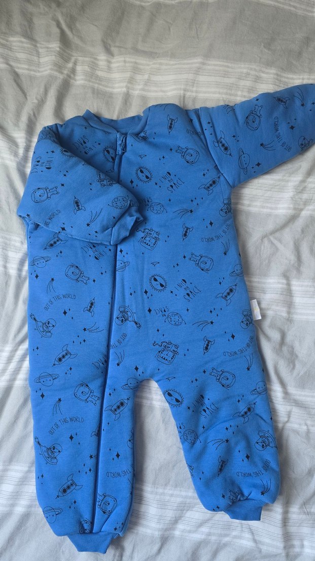 Mavi renkli, fermuarlı erkek bebek tulumu, yumuşak ve sıcak kumaştan üretilmiştir. Sokak stili için uygundur.