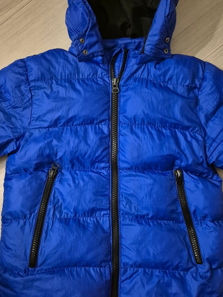 Mavi renkli, parlak sentetik kumaştan yapılmış, fermuarlı ve cep detaylı, dar kesim sokak stili erkek çocuk montu. Notch yaka ve desensiz tasarıma sahiptir.