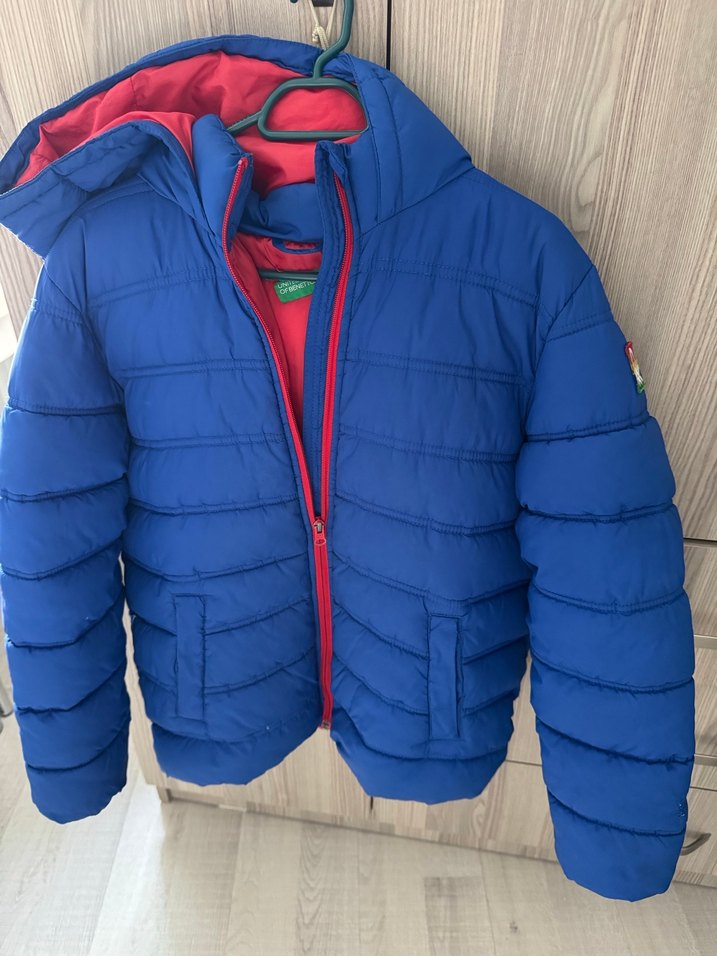 Canlı mavi renkte, fermuarlı ve kesimli erkek çocuk montu. Yumuşak ve sıcak kumaştan, şık yakalı ve sokak stiline uygun.çok küçük belli olmaya deforme yerleri var fotoğrafta gösterildi