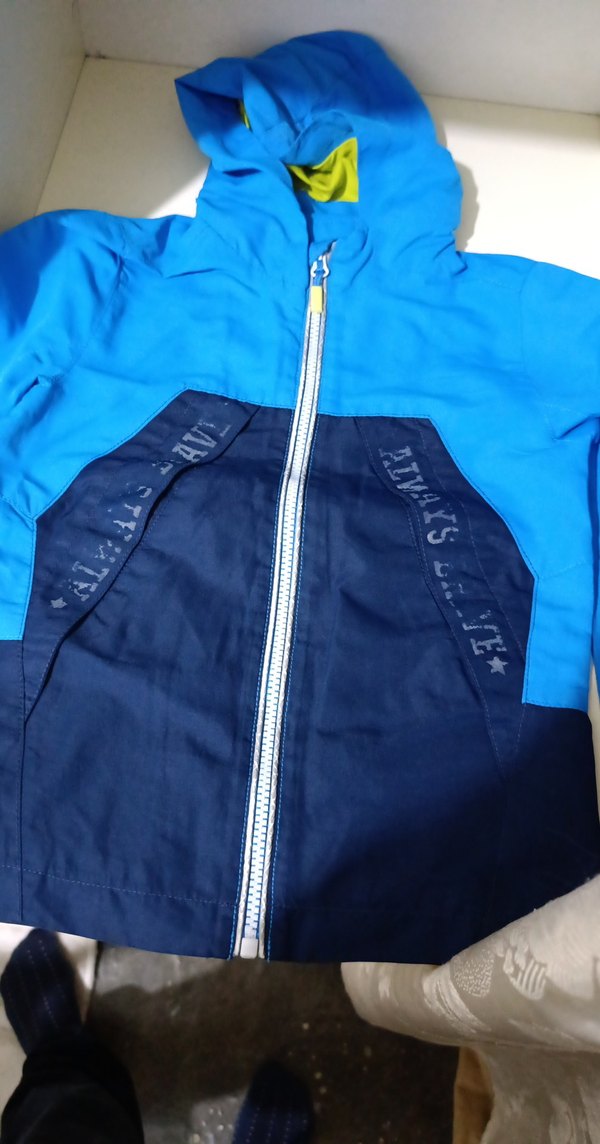 Parlak mavi sentetik kumaştan, fermuarlı ve baskılı detaylı, erkek çocuklar için dar kesim mont. Notlu yaka stili, sokak tarzına uygun.