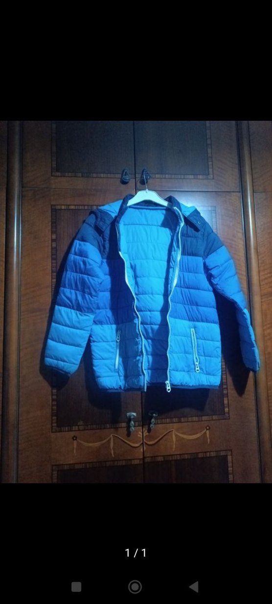 Mavi ve gri tonlarda, fermuarlı önü ve kesimli yaka detayıyla erkek çocuklar için uygun, şık ve rahat bir mont.