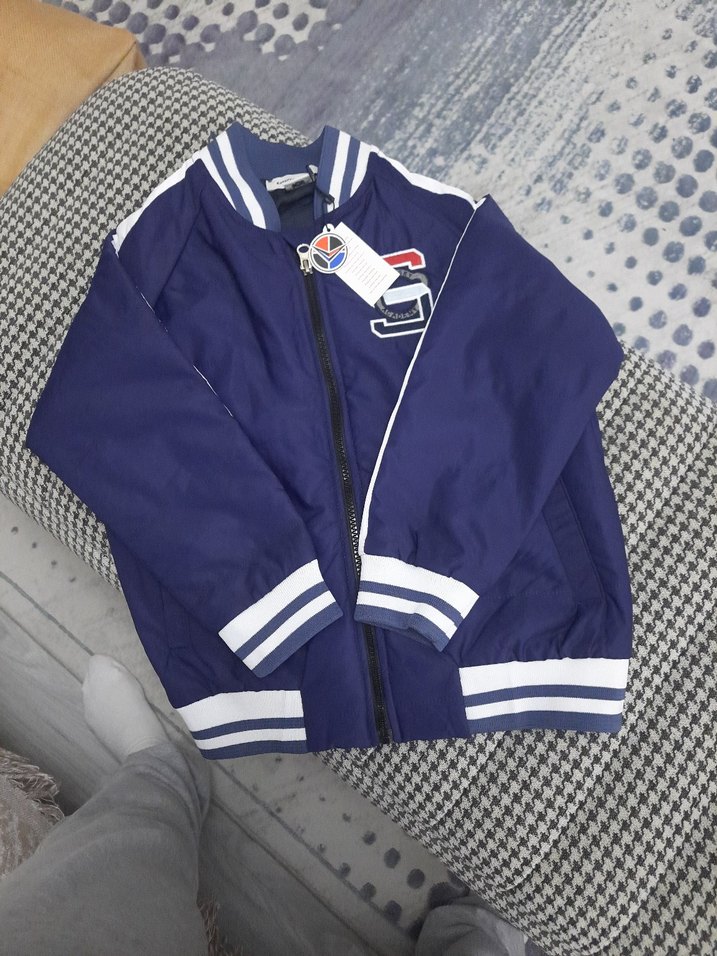 Mavi fermuarlı erkek çocuk sweatshirt, bol kesim ve bisiklet yaka detaylarına sahiptir. Baskılı deseni ve şeritli yakasıyla rahat ve yumuşak kumaştan üretilmiştir.
