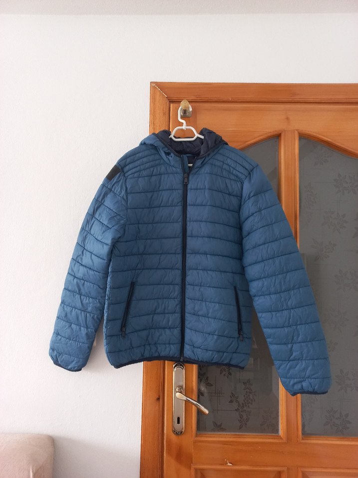 Mavi renkte, fermuarlı ve yakası notched lapel olan erkek mont.İnce ve sıcak tutan kumaştan, fitted kesim ve streetwear tarzında. ✨