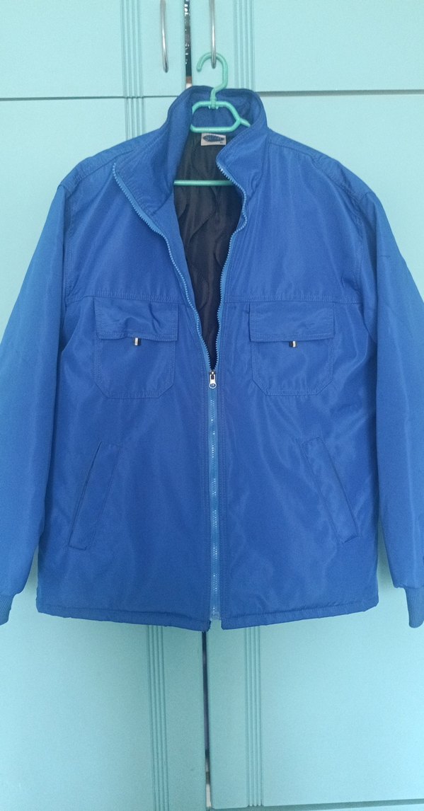 Mavi fermuarlı erkek rüzgarlık, yumuşak ve sıcak keçe kumaştan üretilmiştir. Normal uzunlukta, uzun kollu ve notched yakalıdır. Günlük şık athleisure tarzına uygundur. ️