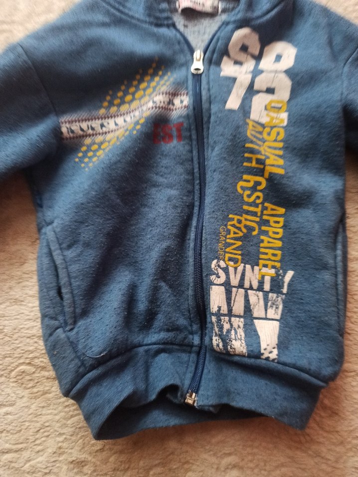 Mavi renkli, fermuarlı ve baskılı erkek sweatshirt. Uzun kollu, bisiklet yakalı ve yumuşak kumaştan, rahat kesim.