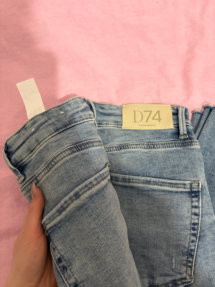 Mavi renkte, fermuarlı detaylı, baskılı desenli, normal midi boyda, dar kesim kadın denim pantolon. D74 etiketi bulunur. Vitrin görseli ürünün kalıbını vs için koydum hiç giymedim