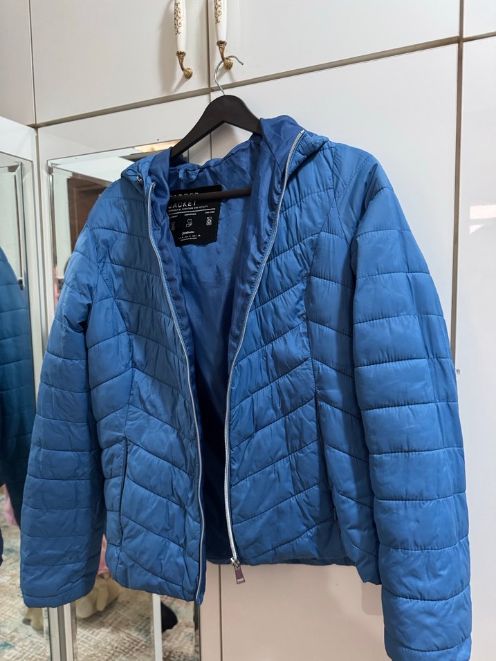 Bu mavi fermuarlı kışlık ceket, kesimli ve uzun kolludur. Yumuşak ve sıcak kumaştan, parlak görünümlüdür. Günlük kullanım için uygundur ve gençler için idealdir. ❄️