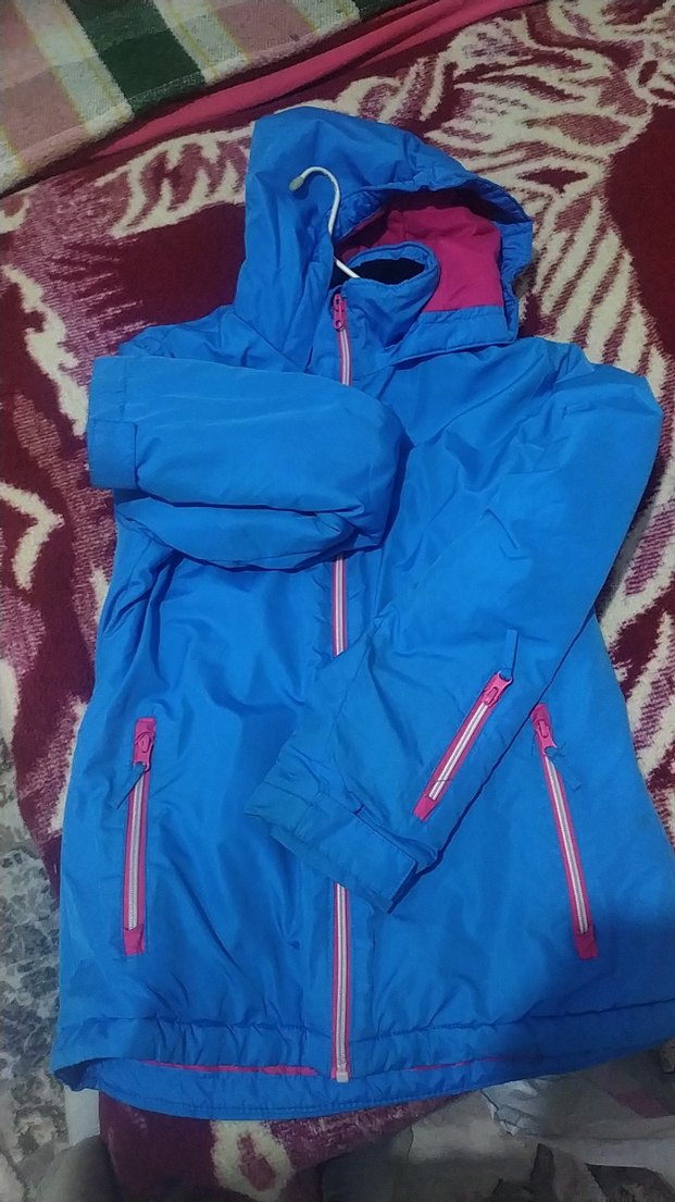 Parlak mavi kadın rüzgarlık, fermuarlı ön ve ceplere, uzun kollara ve kesimli yapıya sahiptir. Yumuşak polar kumaştandır, dış mekan kullanımı için uygundur. kalitelidir