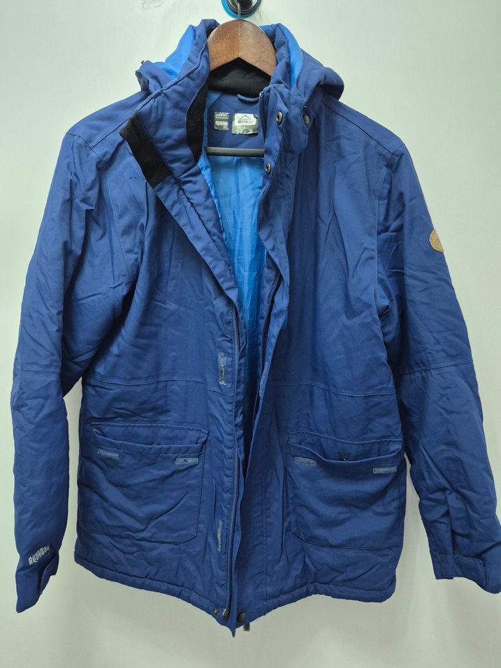 Erkekler için mavi cepli fermuarlı kar, kayakta da kullanılabilir 5000 koruma 14 yas ama büyük kesim iki kol altı arası 55 cm, boyu 72cm, kolu dikişten 60 cm