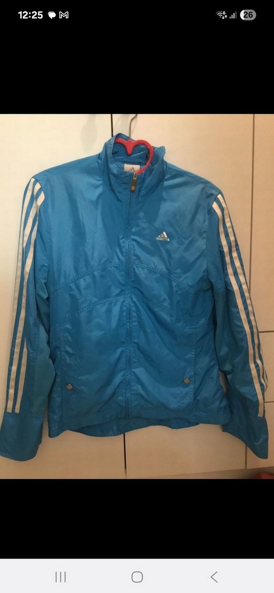 Uzun kollu, yüksek yakalı ve parlak mavi renkte, fermuarlı kadın spor ceketi. Kollarında beyaz şeritler bulunur, spor ve gündelik kullanıma uygundur. son fotoda kullanıma bağlı sürtünme ve leke var çıkar mı bilemiyorum