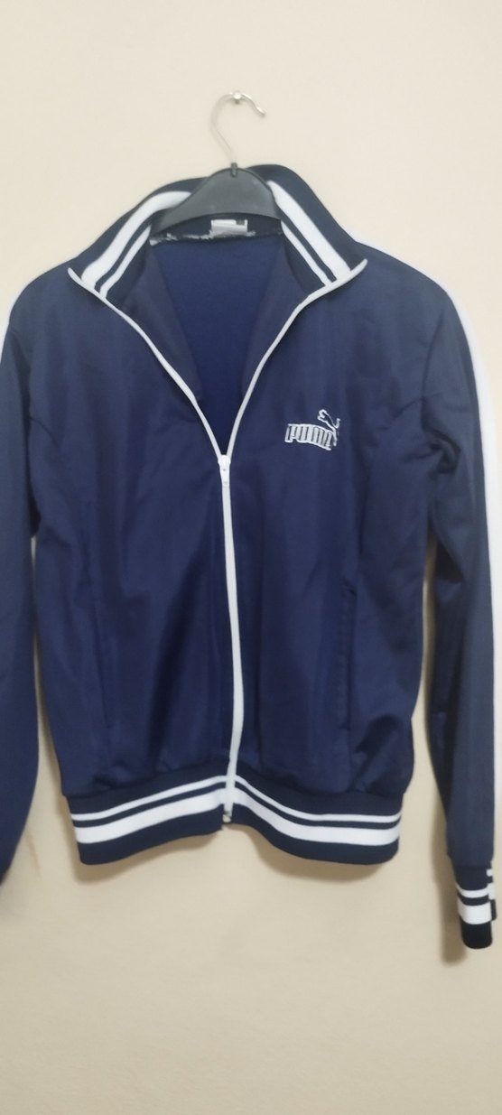 Fermuarlı, uzun kollu ve bisiklet yaka kadın ceketi. Parlak mavi renkte, normal boyda ve rahat kesim. Puma logosu ve çizgili detaylar bulunur.