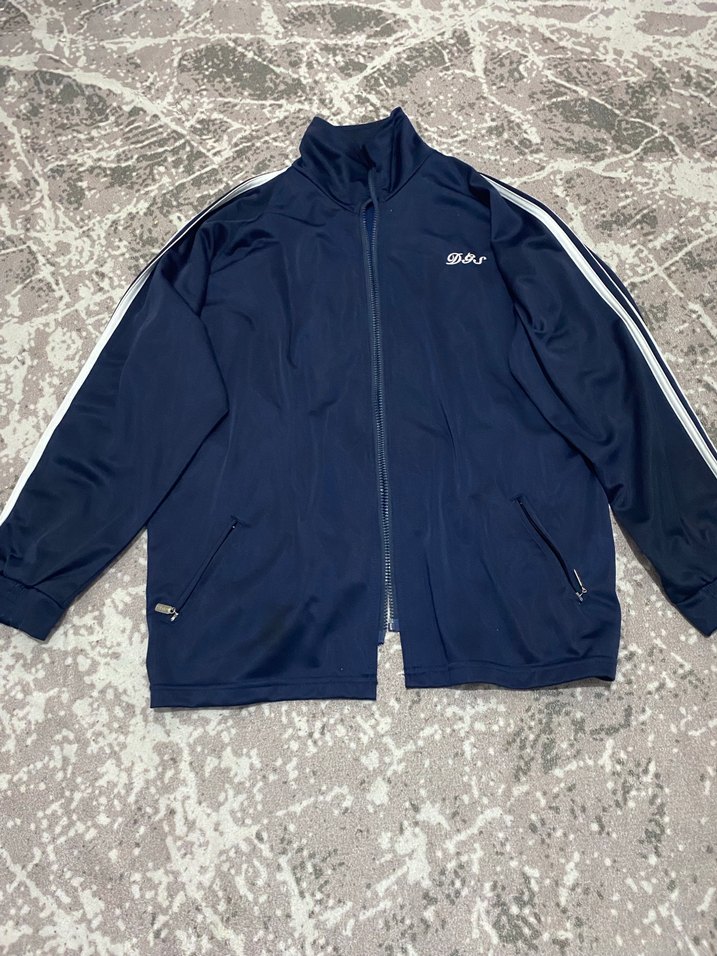 Bu mavi, fermuarlı ve uzun kollu ceket, yüksek yakalı ve beyaz şerit detaylıdır. Parlak dokusu sportif ve günlük kullanıma uygundur. ♀️