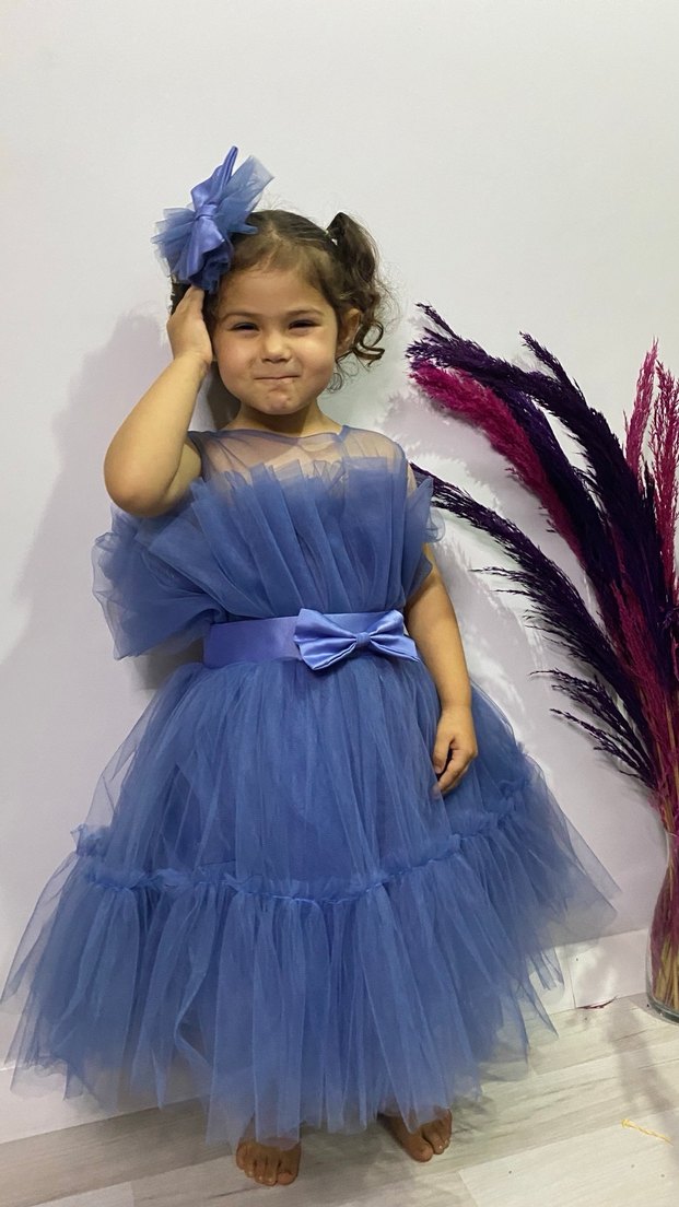 Mavi Fırfırlı Bohem Kız Çocuk Elbisesi