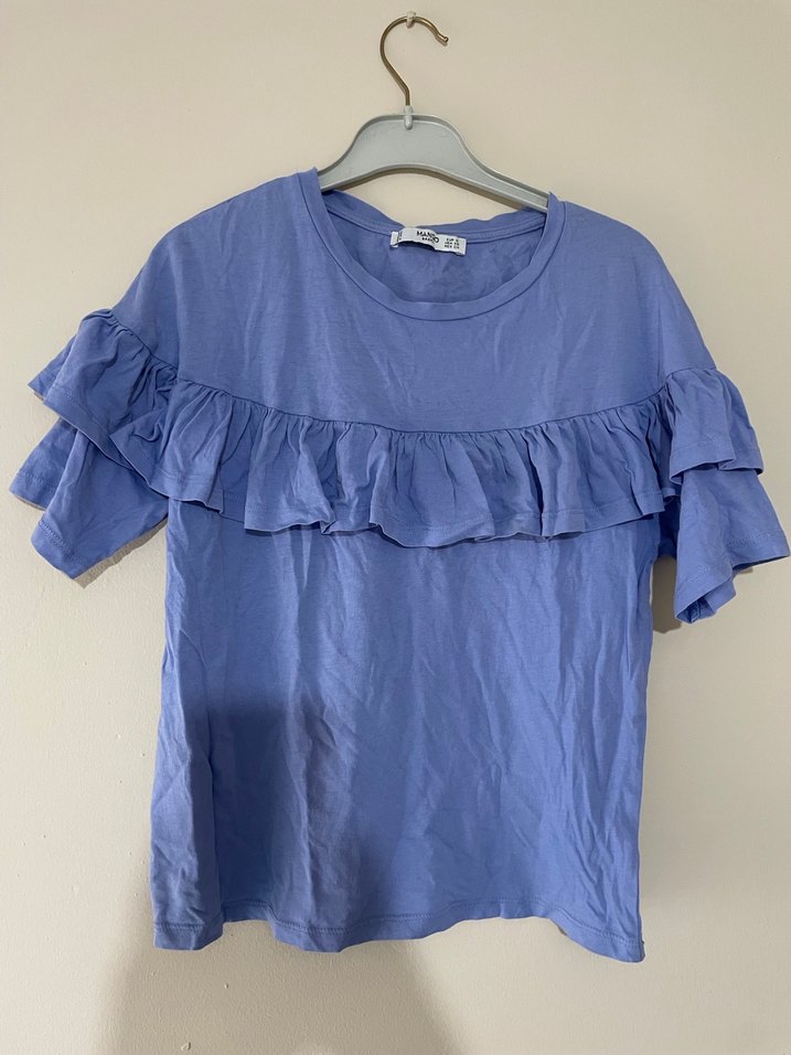 Mavi Fırfırlı Kısa Kollu Kadın Tişört