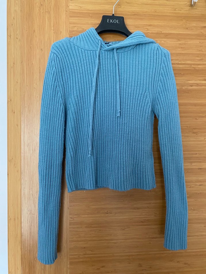 Mavi Fitilli Örgü Kadın Kazak