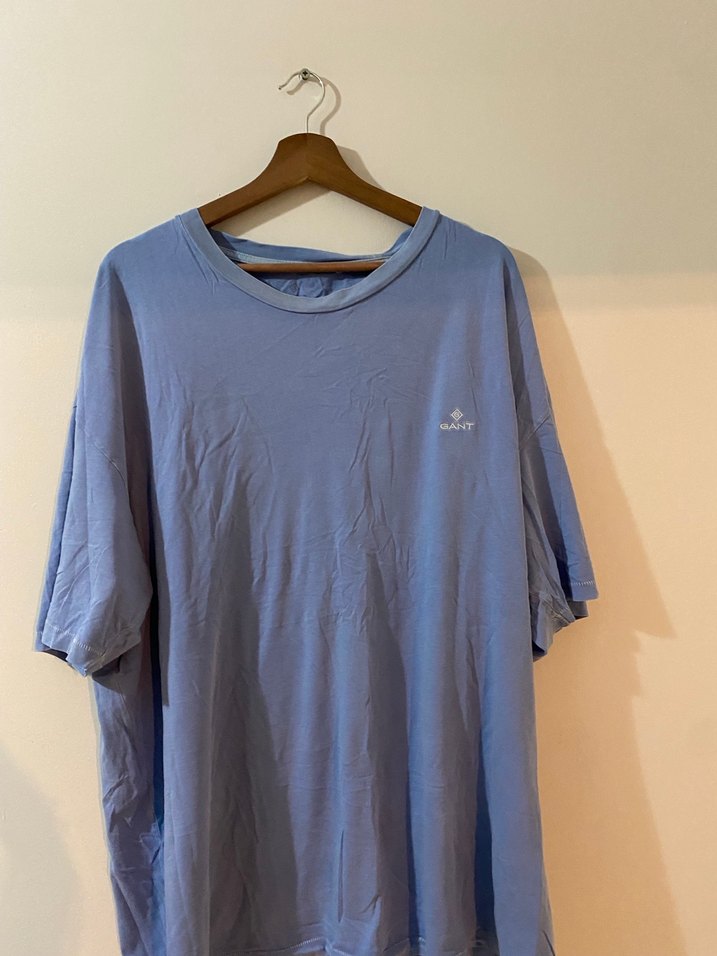 Pastel mavi renkli GANT erkek pamuk tişört, kısa kollu ve yuvarlak yakalıdır. Rahat kesimi ve nefes alan kumaşıyla günlük sokak stili için uygundur.