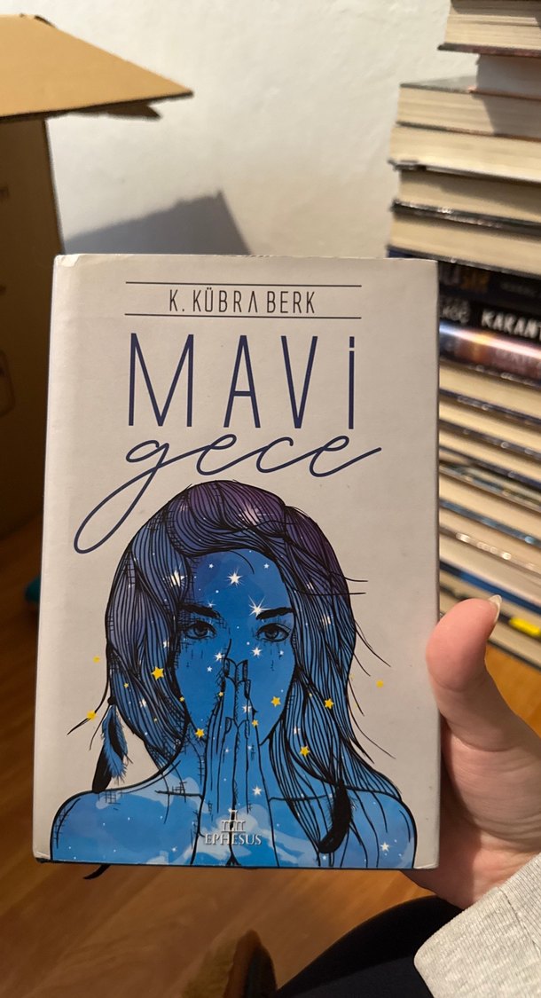 K. Kübra Berk'in 'Mavi Gece' romanı, yıldızlarla süslü kadının çizildiği etkileyici kapağıyla dikkat çekiyor.
