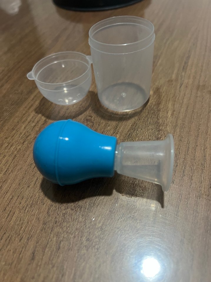 Mavi Göğüs Pompası ve Kapaklı Saklama Kabı