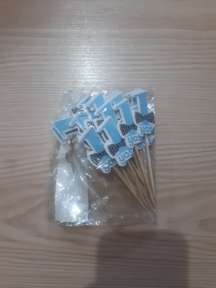 Mavi ve gri renklerde, papyon desenli 1 yaş parti kürdanları, doğum günü kutlamaları için uygun .