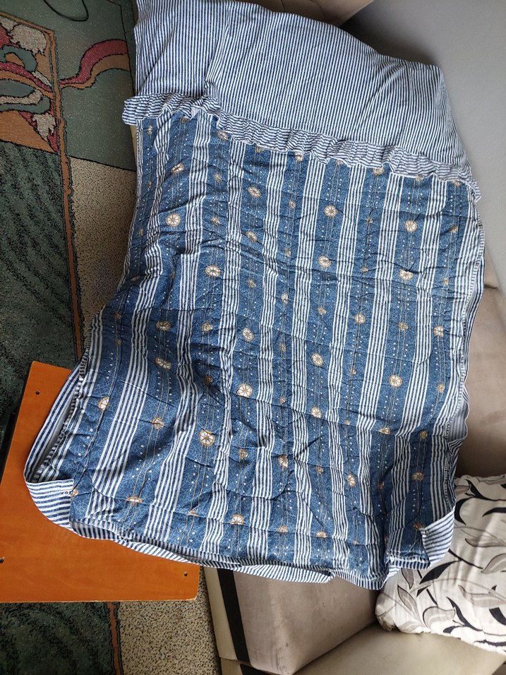Mavi ve gri tonlarda bağlama desenli, yumuşak tekstil kumaştan yapılmış çocuk yorgandır Kullanıma bağlı Kenar kısımda hafif deformesi mevcut Fakat kullanıma engel değil Boy uzunluğu 190 cm dir Eni ise 140 cm dir Yıkatilmiş ve yumuşak pafidir Açıklamayı dikkatli okuyup alım yapınız İade kabul etmiyorum