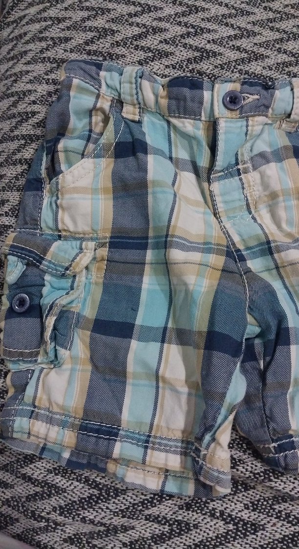 Mavi ve gri tonlarda batik desenli, yumuşak ve rahat bir dokusu olan şort