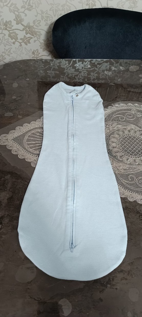 Mavi ve gri renklerde, yumuşak sentetik kumaştan yapılmış bebek uyku tulumu. Önde fermuarlı ve desensiz sade tasarıma sahiptir. 0&3 ay kullanılmadı