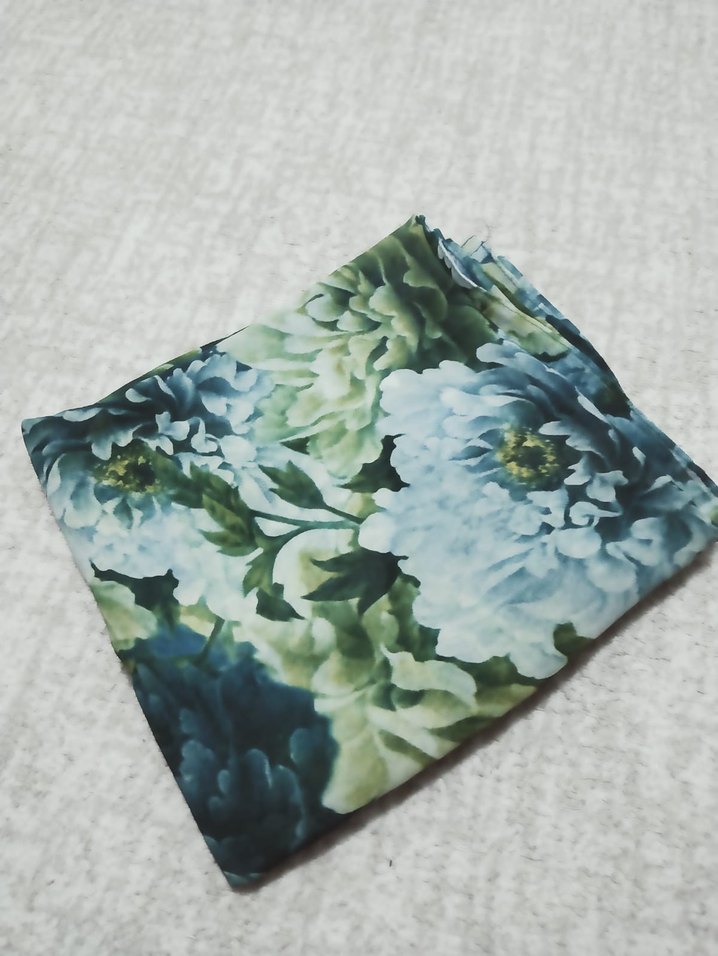 Mavi Gri Çiçek Desenli Fırfırlı Kadın eşarp
