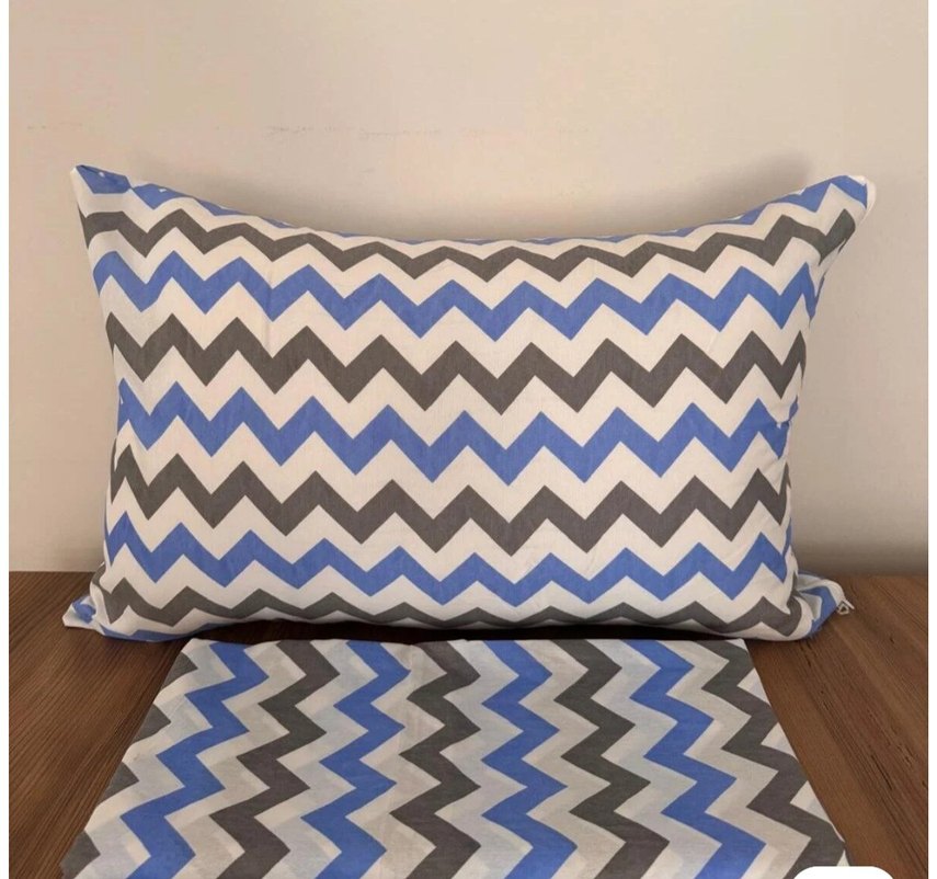 Mavi ve gri çizgili zikzak desenlere sahip modern yastık kılıfı, yaşam alanınıza şık bir dokunuş katıyor. ️