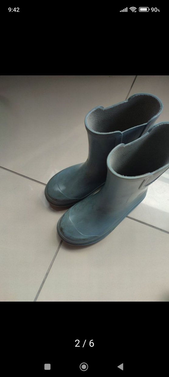 Mavi ve gri renkte, dayanıklı lastikten yapılmış çocuk botları. Desensiz ve sade tasarımıyla rahat bir şıklık sunar.arkada biraz açılma var ama iş görür sorun olmuyor