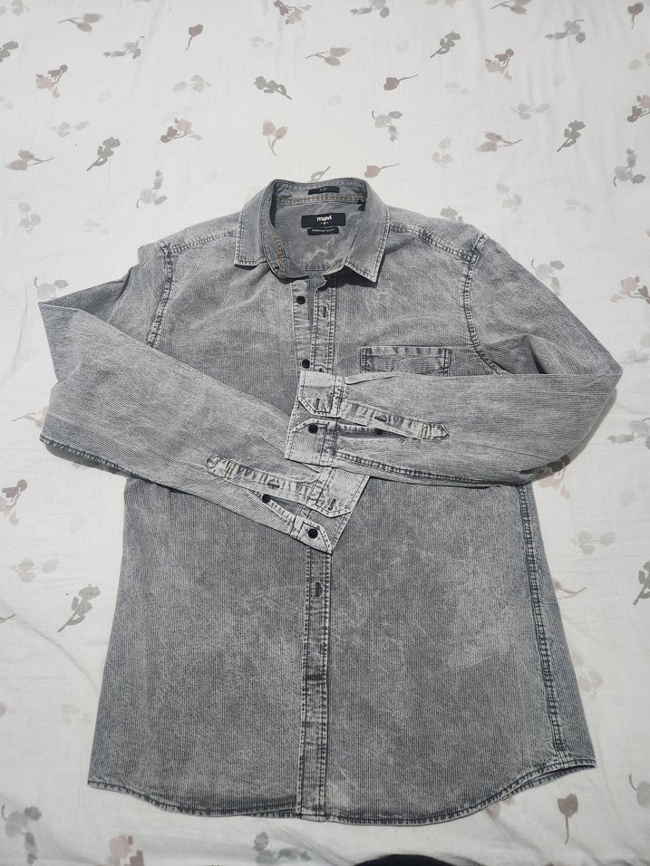 Gri denim kumaştan, uzun kollu ve düğmeli erkek gömleği. Regular fit kesimi ve yakası günlük kullanıma uygundur. Ürün çok temiz kullanılmış olup sıfır ayarındadır. Hatası kusuru yoktur. Omuz 45, Koltuk altı 52, Boy 72