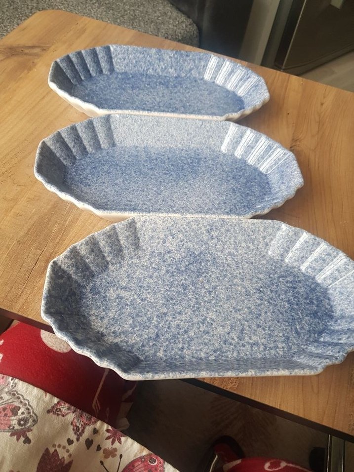 Mavi ve gri renklerde, kutahya porselen salata servis için uygundur. ️